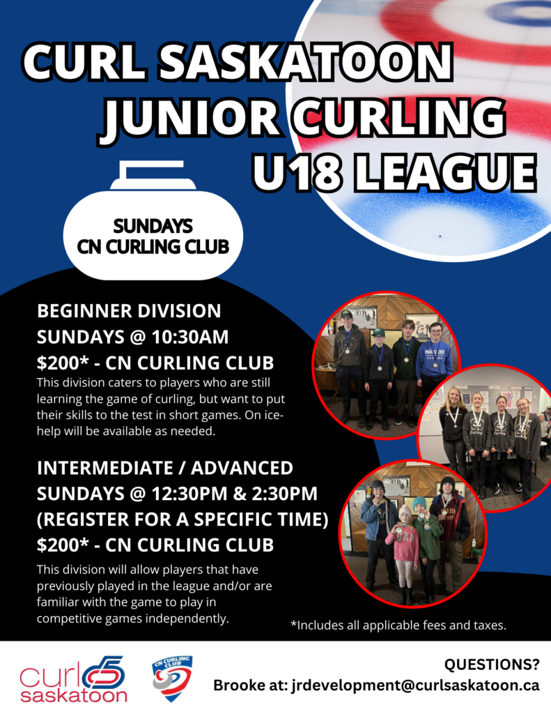 For the 2025-2026 Curling Season, the league is taking place at the CN Curling Club. For more information regarding the league please click the league button above. If the information that you’re looking for isn’t there, please contact our Junior Development Coordinator, Brooke Verbeem, at jrdevelopment@curlsaskatoon.ca